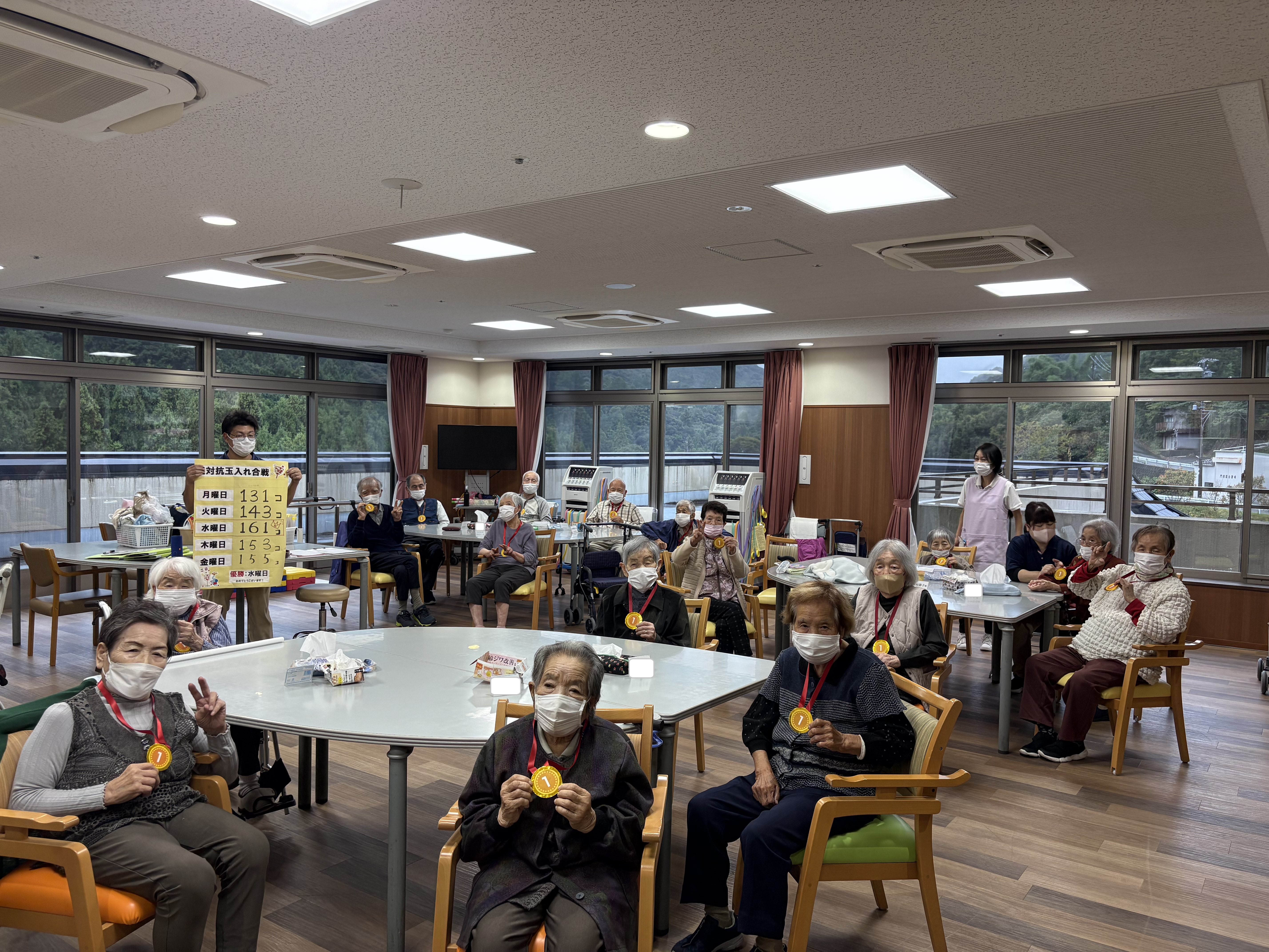 デイサービスでは運動会の競技、玉入れを週対抗戦として行いました⭐