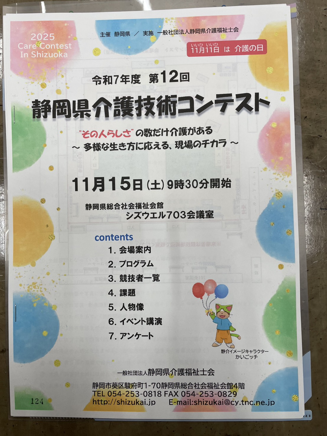 静岡県介護技術コンテストに特別養護老人ホーム引佐みやまの里 久保田介護室長が参加しました。