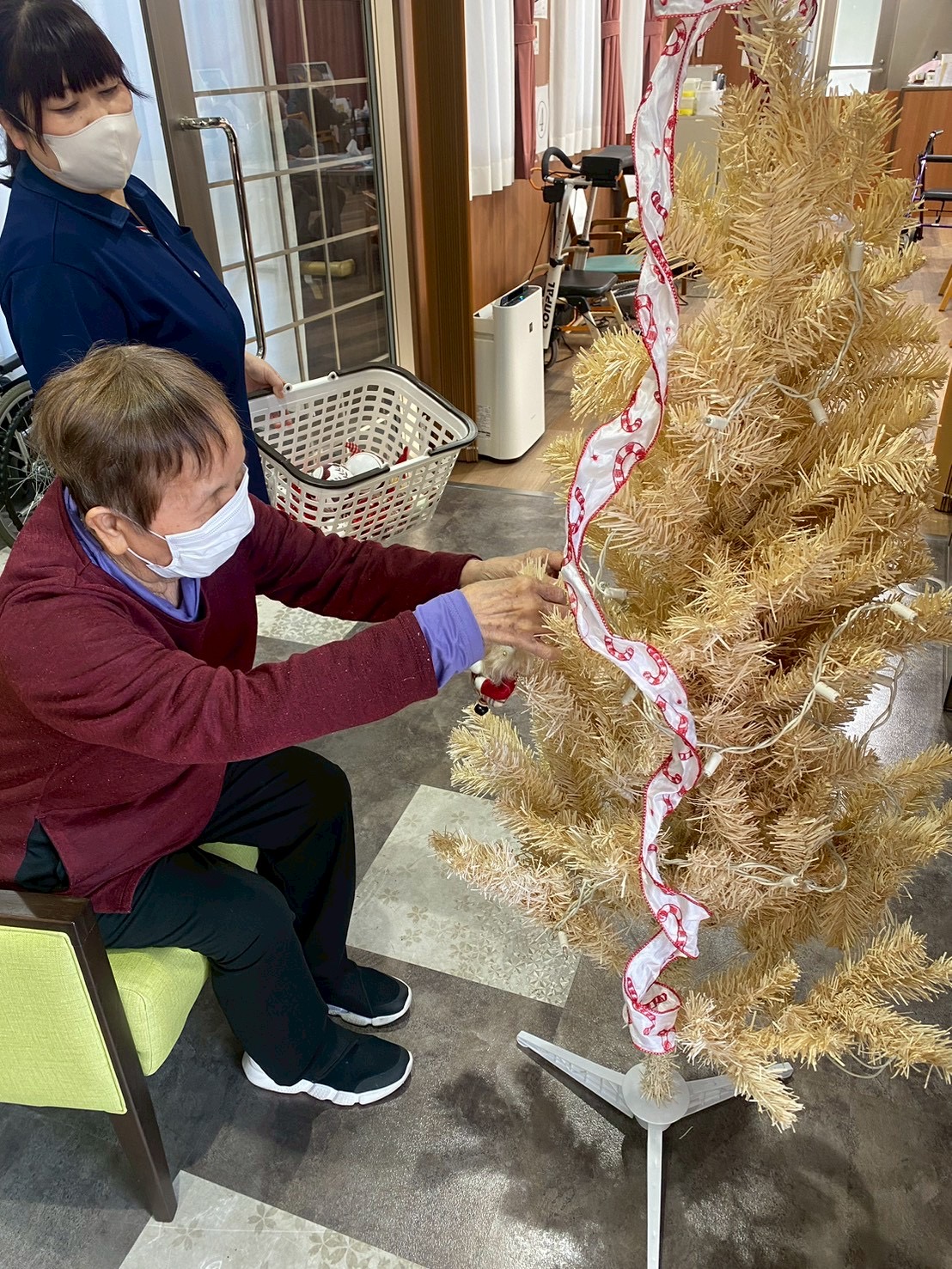 デイサービス クリスマスの準備 風が冷たく、寒いなぁと感じるようになってきました。 皆様、体調は崩されていませんか? デイサービスではクリスマスの飾りつけが始まりました⭐ はやくこいこいクリスマス~♬ ?? なーんて口ずさんでおられる方もいらっしゃいました(笑)