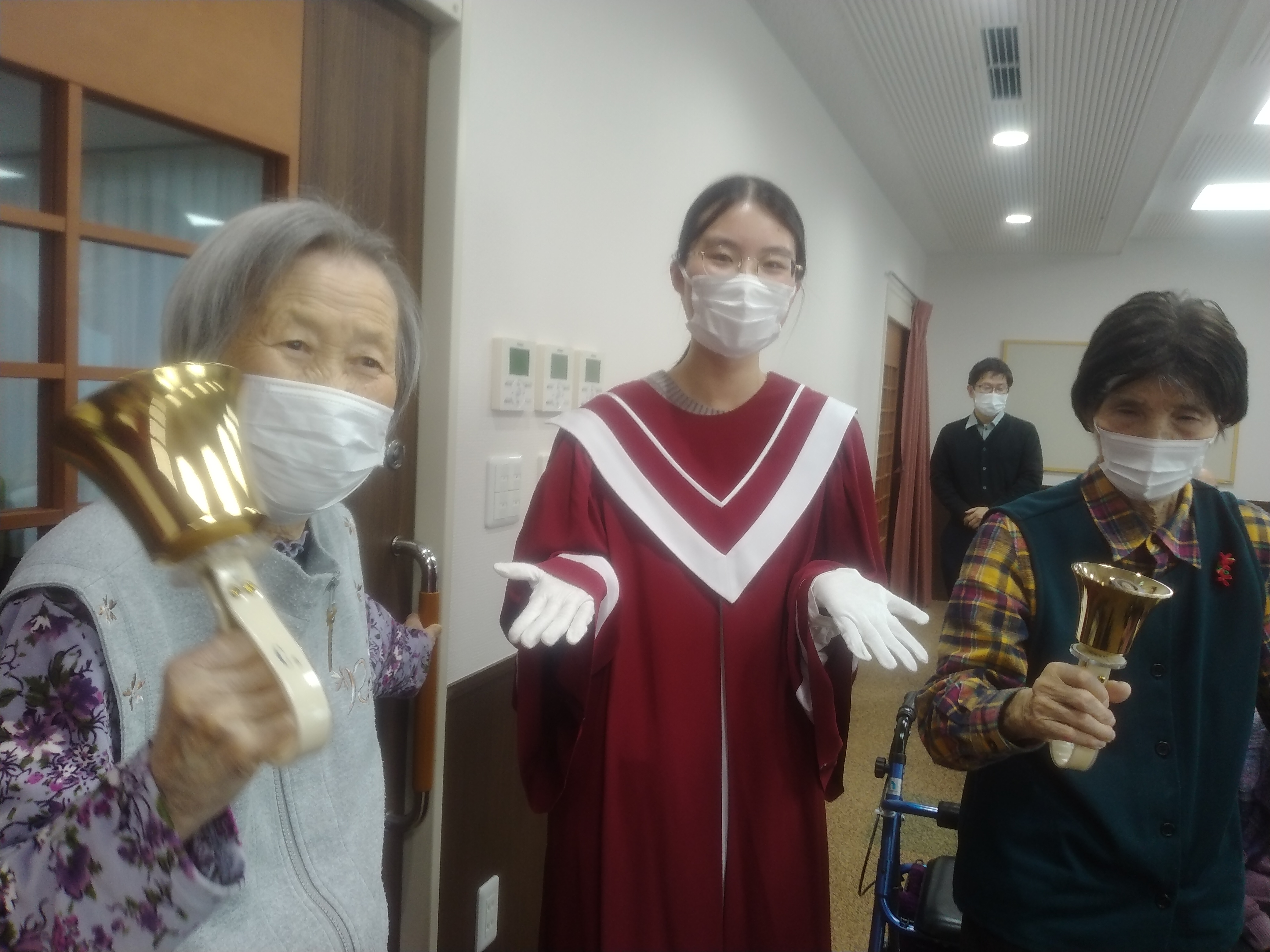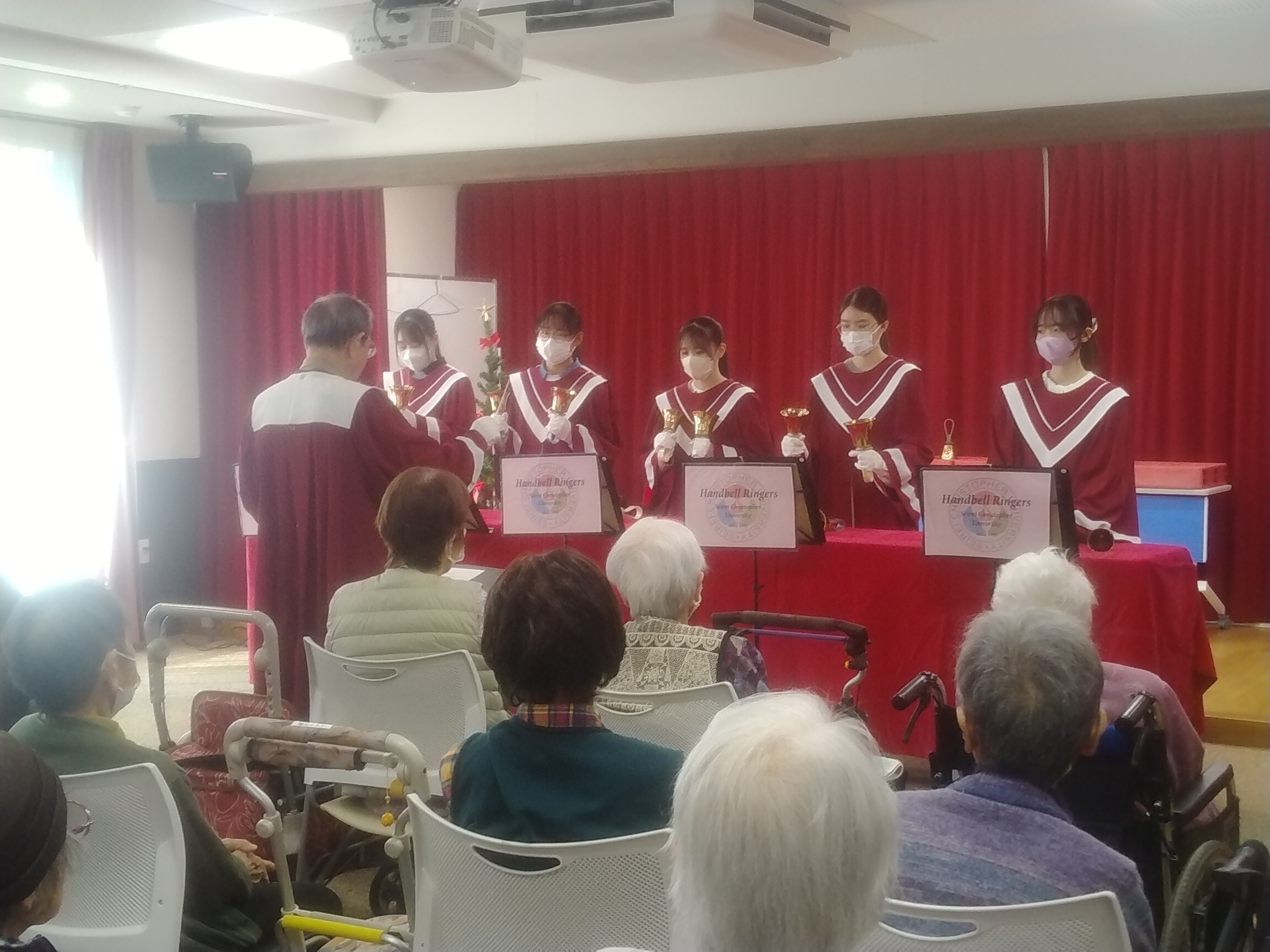 ハンドベルでクリスマスソングや皆様もご存じの映画音楽などの演奏をしてくださいました。